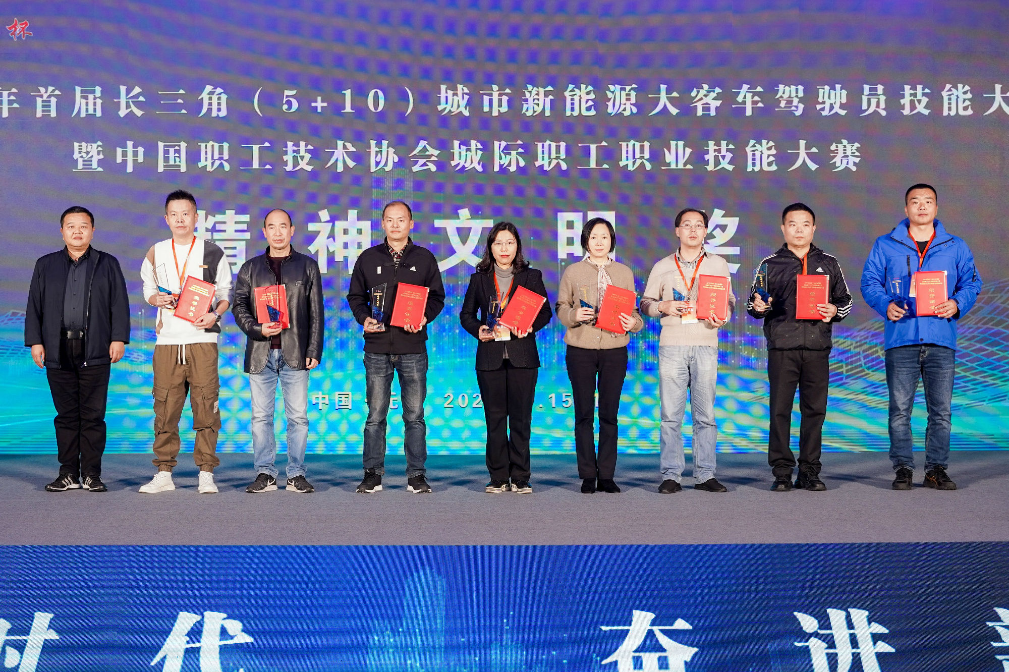11月16日,2022年首屆長三角(5+10)城市新能源大客車駕駛員技能大賽在無錫完美收官。徐州公交集團(tuán)黨委副書記、紀(jì)委書記、工會(huì)主席竇同銀帶領(lǐng)由集團(tuán)駕駛員組成的徐州市代表隊(duì)參加此次競賽,并榮獲了團(tuán)體精神文明獎(jiǎng),駕駛員段世望、秦浩分別獲三等獎(jiǎng)的好成績。