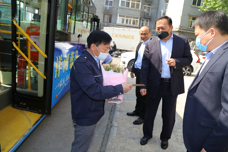 當(dāng)天上午,公交集團(tuán)黨委書記、董事長杜紅軍,總經(jīng)理馮陸陸,常務(wù)副總經(jīng)理蔣成彪,副總經(jīng)理丁玉華帶隊分為四組,到14路、64路、10路等終點站、車場等處開展勞模標(biāo)兵走訪慰問活動,為韓杰、劉艷軍、楊鵬鵬、曹瑞國、劉委等11名市勞模,省、市五一勞動獎?wù)潞推髽I(yè)勞模送去了鮮花和節(jié)日慰問金。