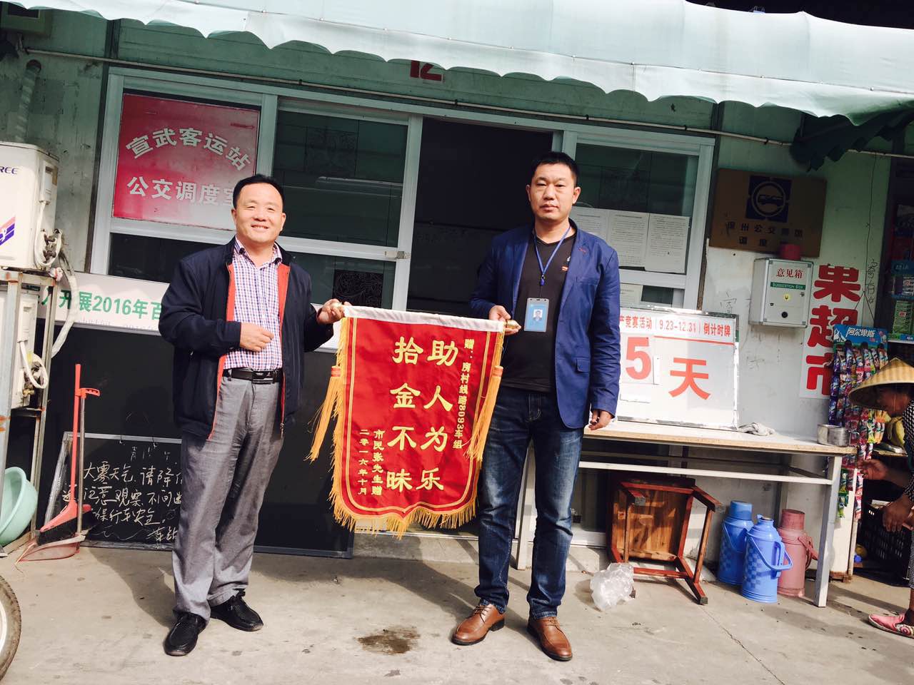 83路附線乘務(wù)員侯閃閃拾到1800元現(xiàn)金歸還——10月6日上午,83附線路乘務(wù)員侯閃閃撿到一個裝有棉衣的手提袋,經(jīng)檢查棉衣口袋中有現(xiàn)金1800元。侯閃閃將物品交到調(diào)度室保管,經(jīng)過車站多方聯(lián)系,失主張先生于次日上午來到公交宣武車站調(diào)度室將失物領(lǐng)回,并送來錦旗表示感謝。