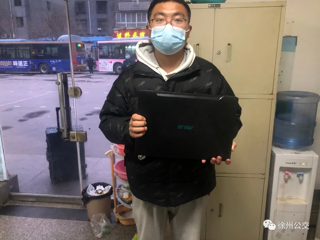 此時,專1路1696號車到達(dá)徐州站,駕駛員王強開始打掃車輛衛(wèi)生、對車廂進行通風(fēng)、消毒,忽然,他發(fā)現(xiàn)車廂后座位上有一個藍(lán)色雙肩背包,打開發(fā)現(xiàn)里面有一臺筆記本電腦。王強隨即撥打車隊電話報備,并把背包轉(zhuǎn)交給終點站工作人員登記保管。工作人員在包里找到了失主的聯(lián)系方式,很快聯(lián)系到失主陳先生。